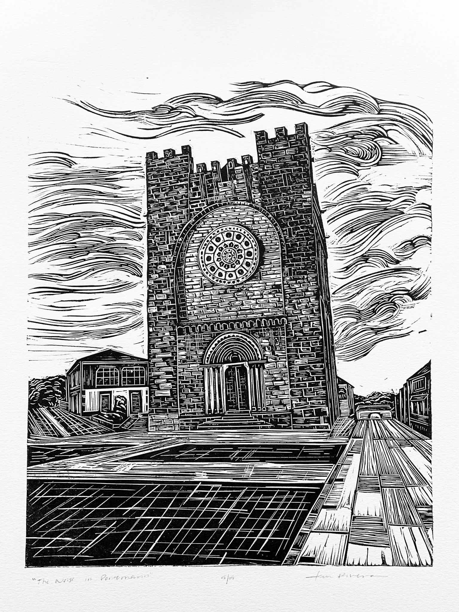 Each print was created through relief printing methods by carving the images onto linoleum blocks.